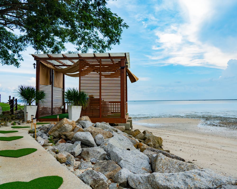 Watch the sun set over the shimmering water as your sip on a delicious mocktail or coffee and tasty canapés at the Amai Bistro, Ombak Villa. Open-air canopied dining beside a Fisherman Village reveals panoramic views, while indoor dining with floor to ceiling glass wall creates a sense of the expanse of the outdoors.